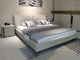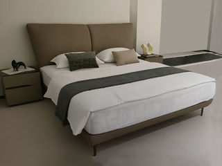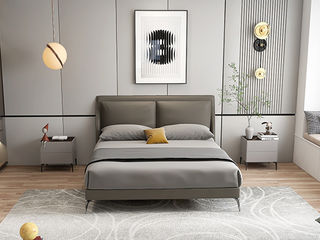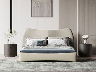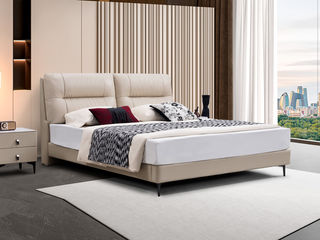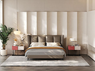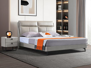 皇朝家居 现代 接触面真皮+软靠包+实木床边+10公分钢木排骨架 1.8米床
