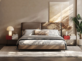 洛萨 现代极简 俄罗斯进口木方+高回弹海绵+接触面进口头层牛皮+钢木宽排排骨架 软床