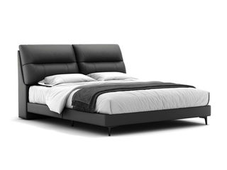 A系优选 现代简约 接触面头层牛皮+仿皮+实木框架+10公分钢木排骨架+黑色床脚+松木+黑色角码 1.8床