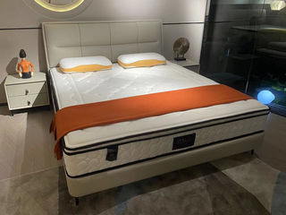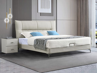 A系优选 现代简约 接触面头层牛皮+仿皮+高回弹海绵+实木框架+10分钢木排骨架 1.8米床