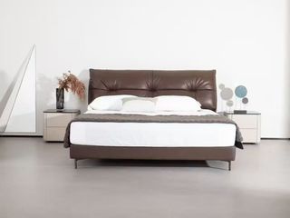 缔造 极简 接触面头层磨砂真皮+高密度海棉+不锈钢脚+实木排骨架 1.8米皮床