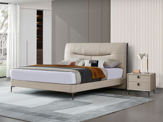 维利品尚 现代简约 接触面头层真皮+高密度海棉+实木内架+10公分钢木排骨架 1.5米床