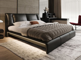维利品尚 现代简约 接触面头层原生牛皮+靠包:白鹅羽绒+竹炭海绵+松木内架+多层实木+T800碳纤维(航空级)排骨架+感应灯 1.8米床