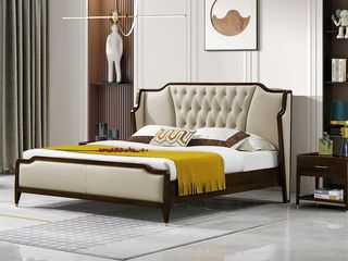 A家家居 现代简约 接触面头层真皮+海绵填充实木+实木多层板框架 1.8床