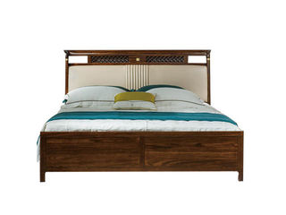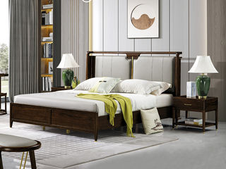 美檀家居 新中式 进口黑檀木+仿真皮+高回弹海绵+多层实木板+静音床板+电镀五金 黑檀色 1.8米床