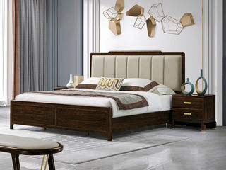 乐芙兰 北欧 进口白蜡木+多层实木板+松木床板 胡桃色 1.8米床