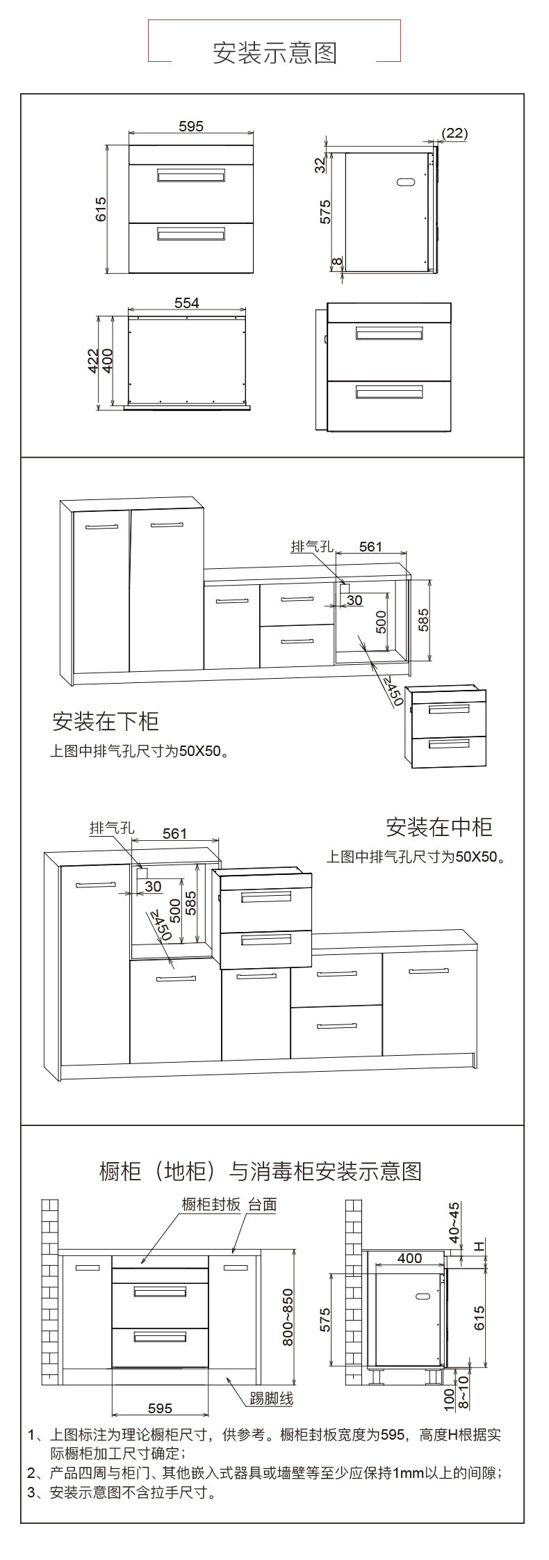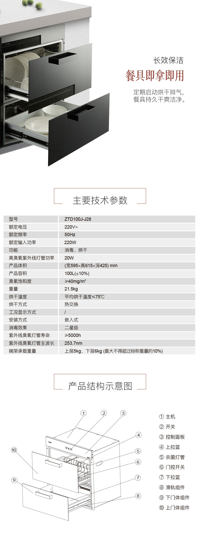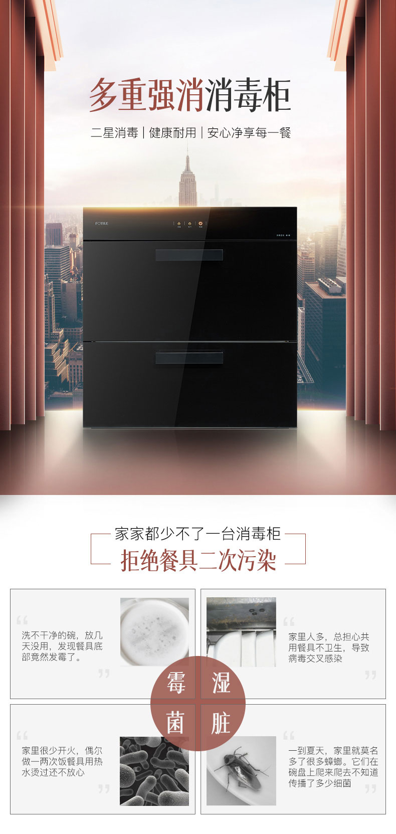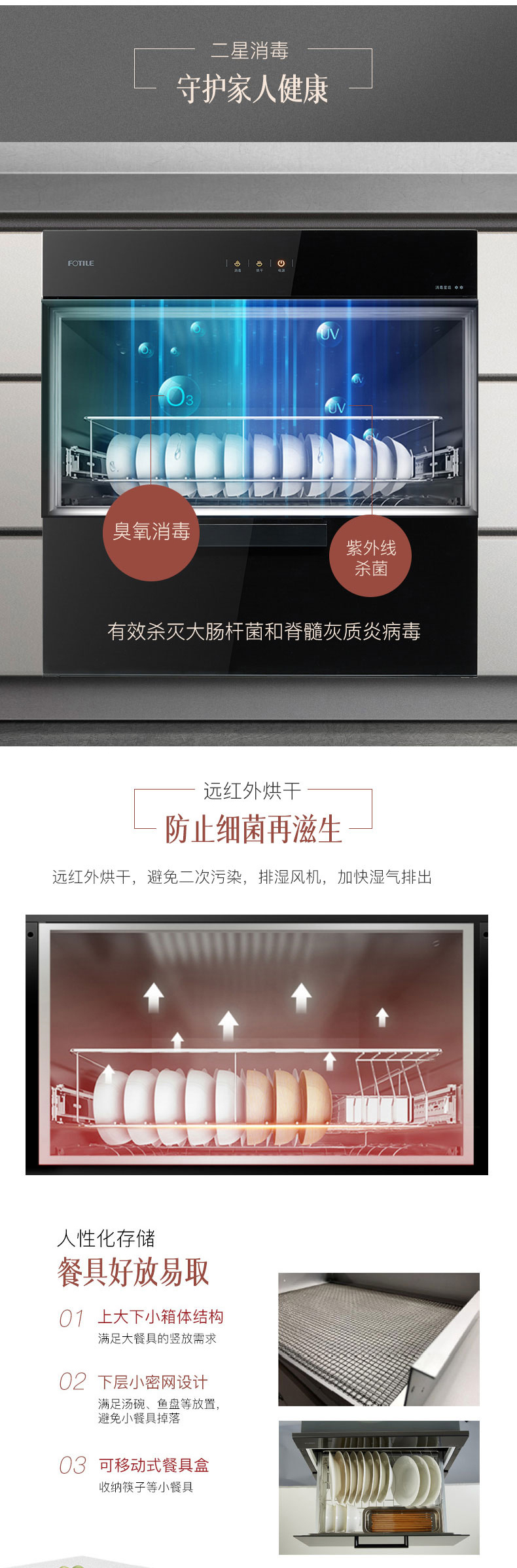 方太 二星级 紫外线消毒+远红外烘干 嵌入式 消毒柜