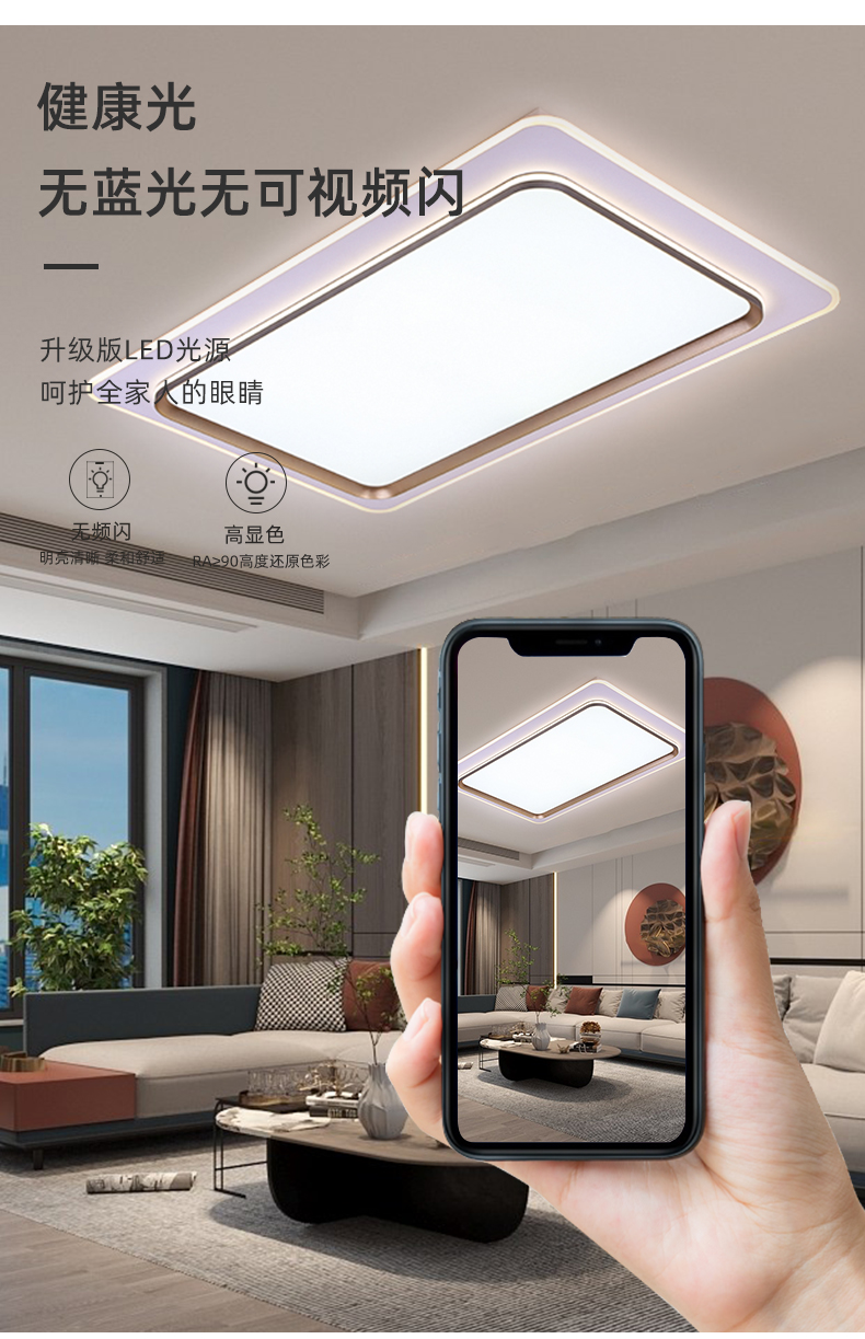 宏光灯饰 极简 冷扎钢板+亚克力 LED 130w 变光 咖啡色 大长方形吸顶灯