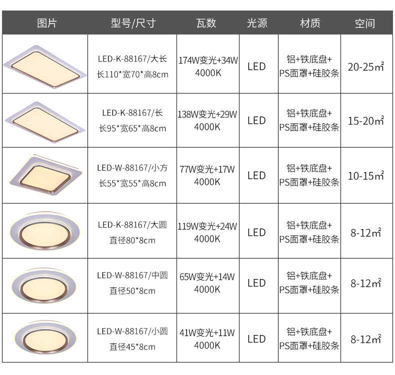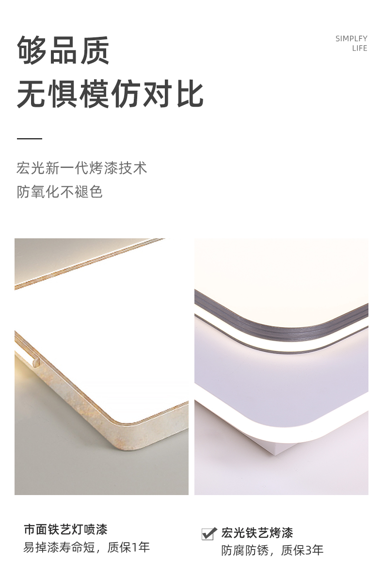 宏光灯饰 极简 铝材+亚克力 LED 90+136W 变光 沙白+沙黑色 长方形吸顶灯