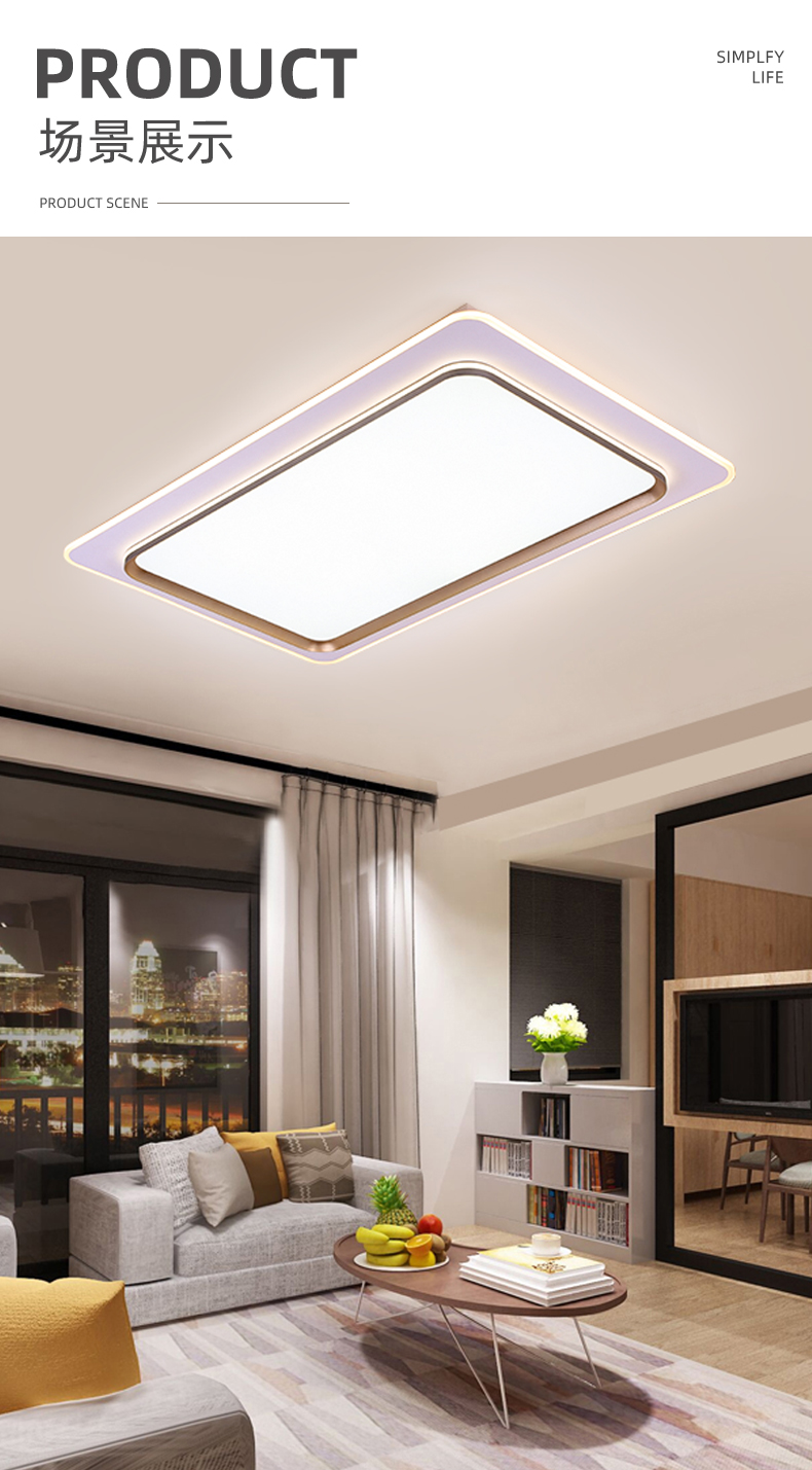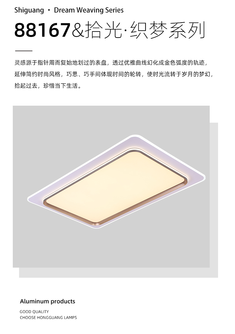 宏光灯饰 极简 冷扎钢板+铝材+亚克力 LED 174+34W 变光 沙白+灰+金色 大长方形吸顶灯 |