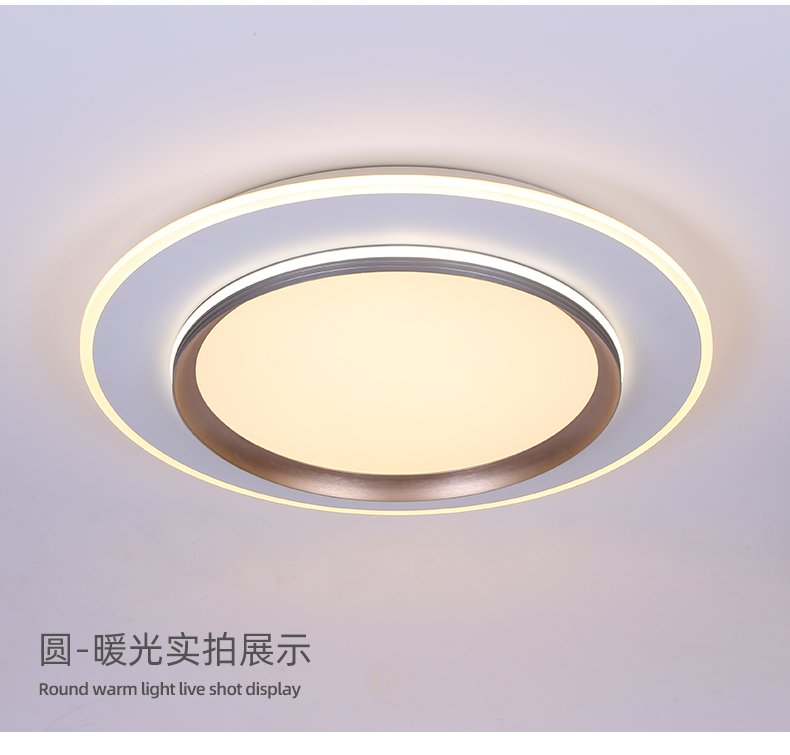 宏光灯饰 极简 冷扎钢板+铝材+亚克力 LED 52w 变光 沙白+S拉丝钛金色 大圆形吸顶灯¥920