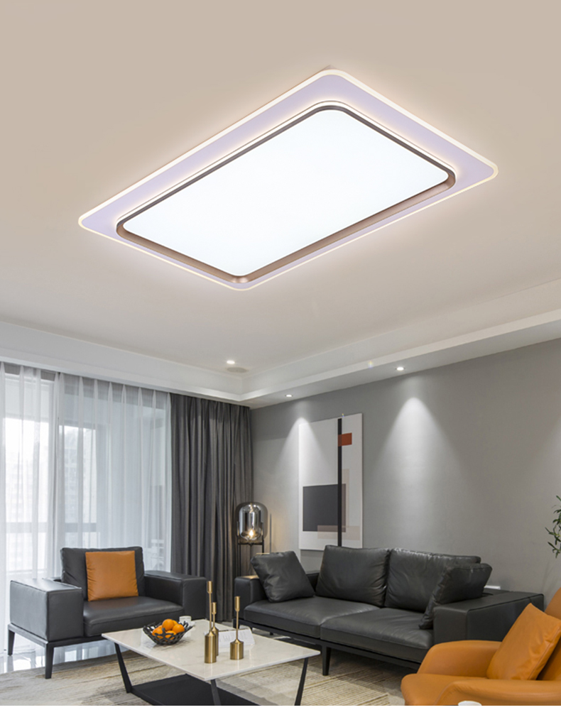 宏光灯饰 极简 冷扎钢板+亚克力 LED 130w 变光 咖啡色 大长方形吸顶灯