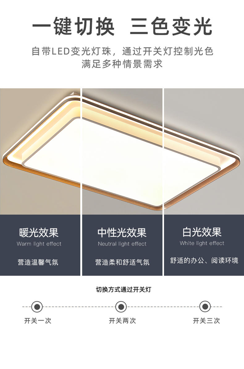 宏光灯饰 极简 铝材+亚克力 LED 49W 变光 哑白+沙黑色 3头吸顶灯¥340