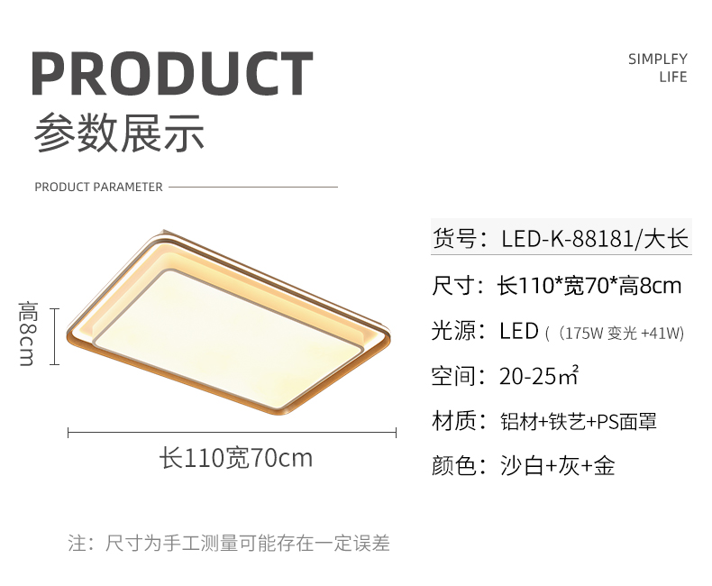 宏光灯饰 极简 铝材+亚克力 LED 22w 变光 拉丝浅金色 吸顶灯| 商品详情 | 规格参数 | 评价(0) | 购买咨询() | 产品实拍图 | 服务标准 |