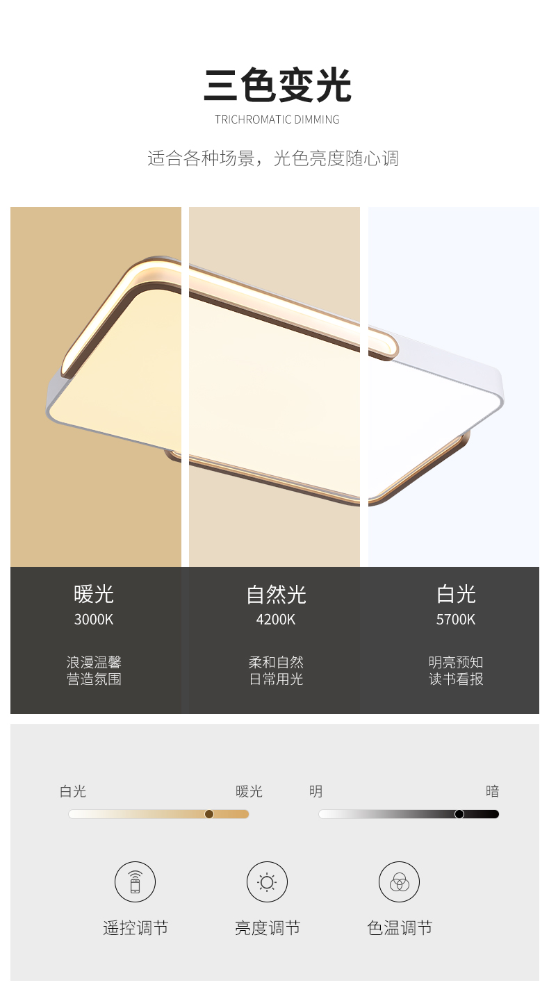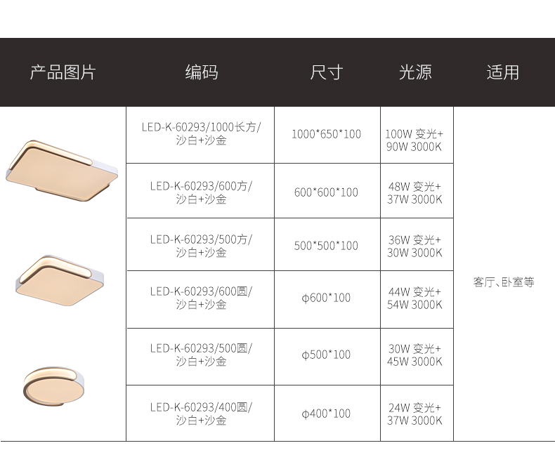 宏光灯饰 极简 冷扎钢板+铝材+亚克力 LED 36+30W 变光 沙白+沙金色 方形吸顶灯