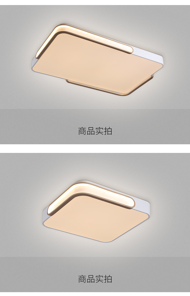 宏光灯饰 极简 铝材+亚克力 LED 77+25W 变光 沙白+灰+金色 小方形吸顶灯
