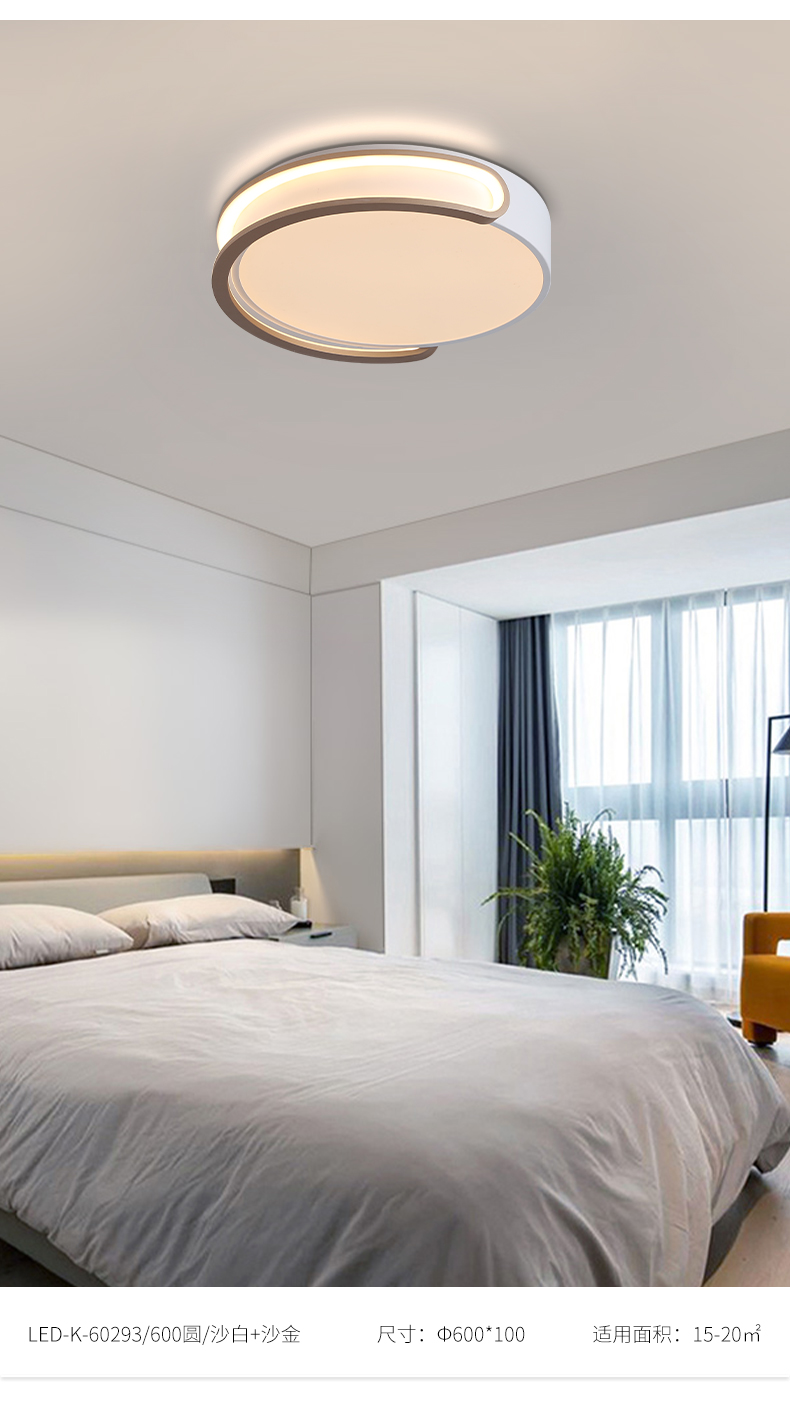 宏光灯饰 极简 冷扎钢板+铝材+亚克力 LED 52w 变光 沙白+S拉丝钛金色 大圆形吸顶灯¥920