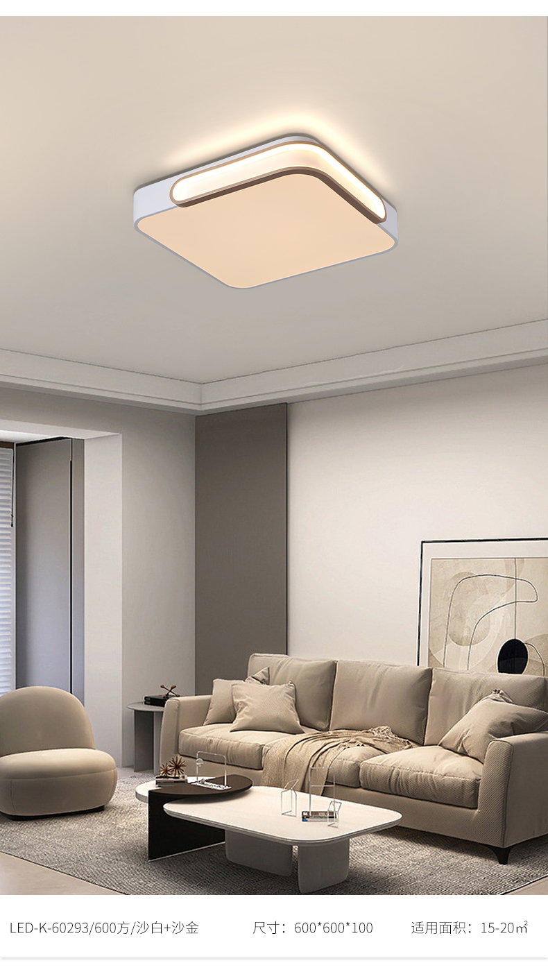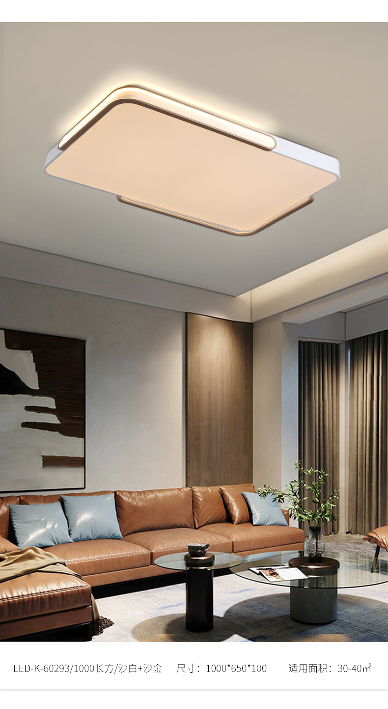 宏光灯饰 极简 冷扎钢板+铝材+亚克力 LED 36+30W 变光 沙白+沙金色 方形吸顶灯 |