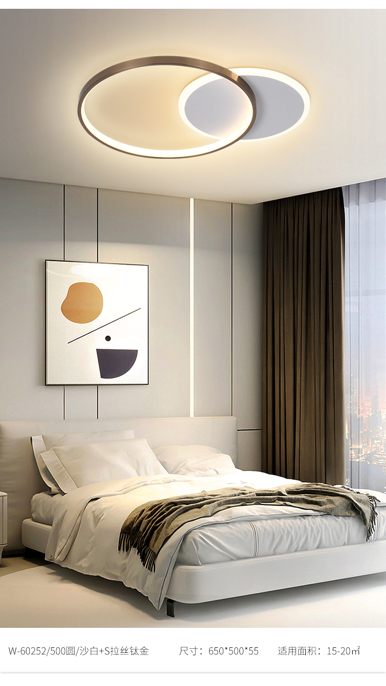 宏光灯饰 极简 冷扎钢板+铝材+亚克力 LED 52w 变光 沙白+S拉丝钛金色 大圆形吸顶灯 |