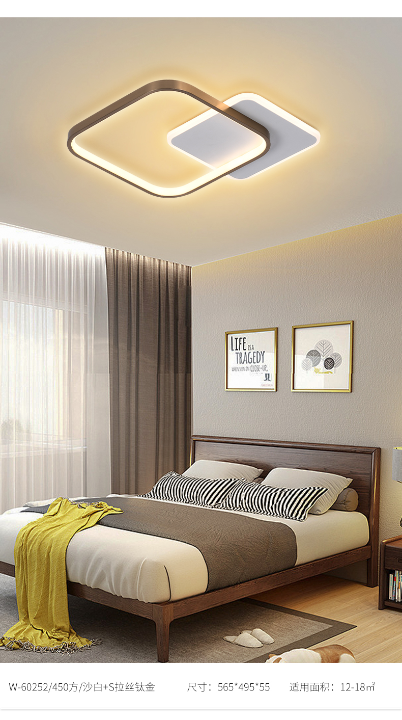 宏光灯饰 极简 铝材+亚克力 LED 22w 变光 拉丝浅金色 吸顶灯¥1128