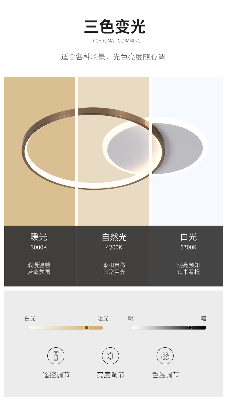 宏光灯饰 极简 冷扎钢板+铝材+亚克力 LED 52w 变光 沙白+S拉丝钛金色 大圆形吸顶灯
