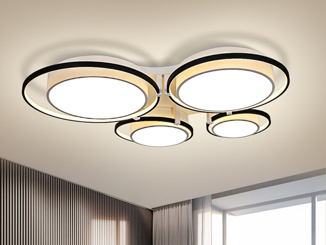 宏光灯饰 极简 铝材+亚克力 LED 49W 变光 哑白+沙黑色 3头吸顶灯¥340