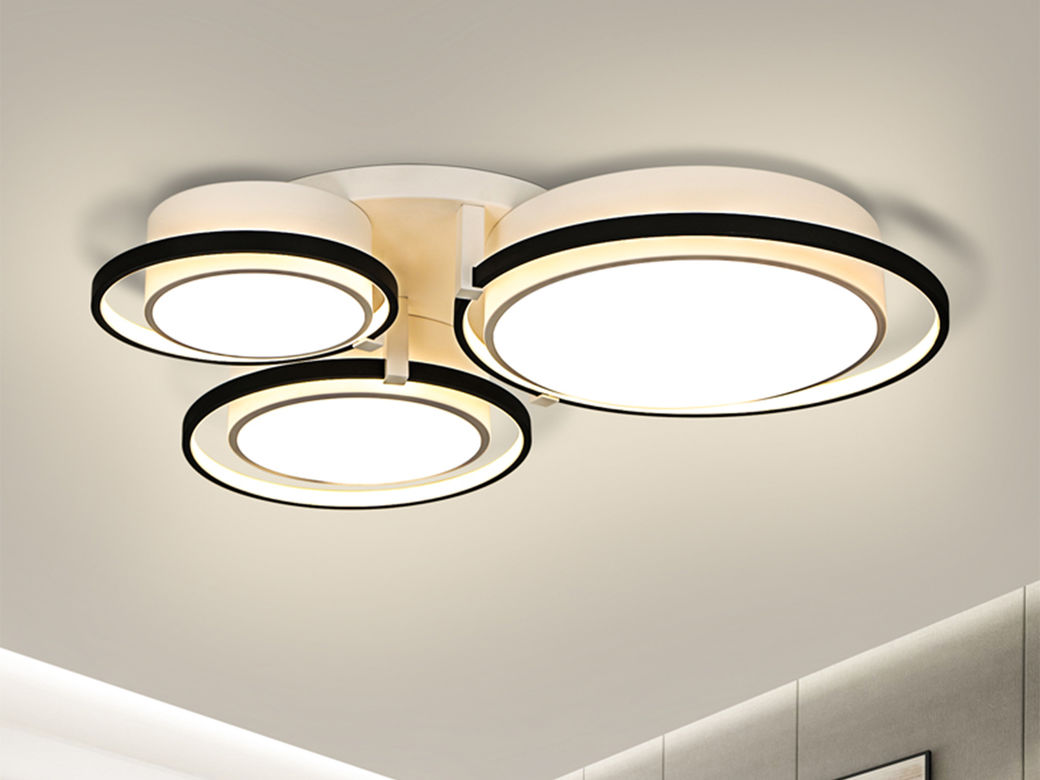 宏光灯饰 极简 铝材+亚克力 LED 49W 变光 哑白+沙黑色 3头吸顶灯¥340