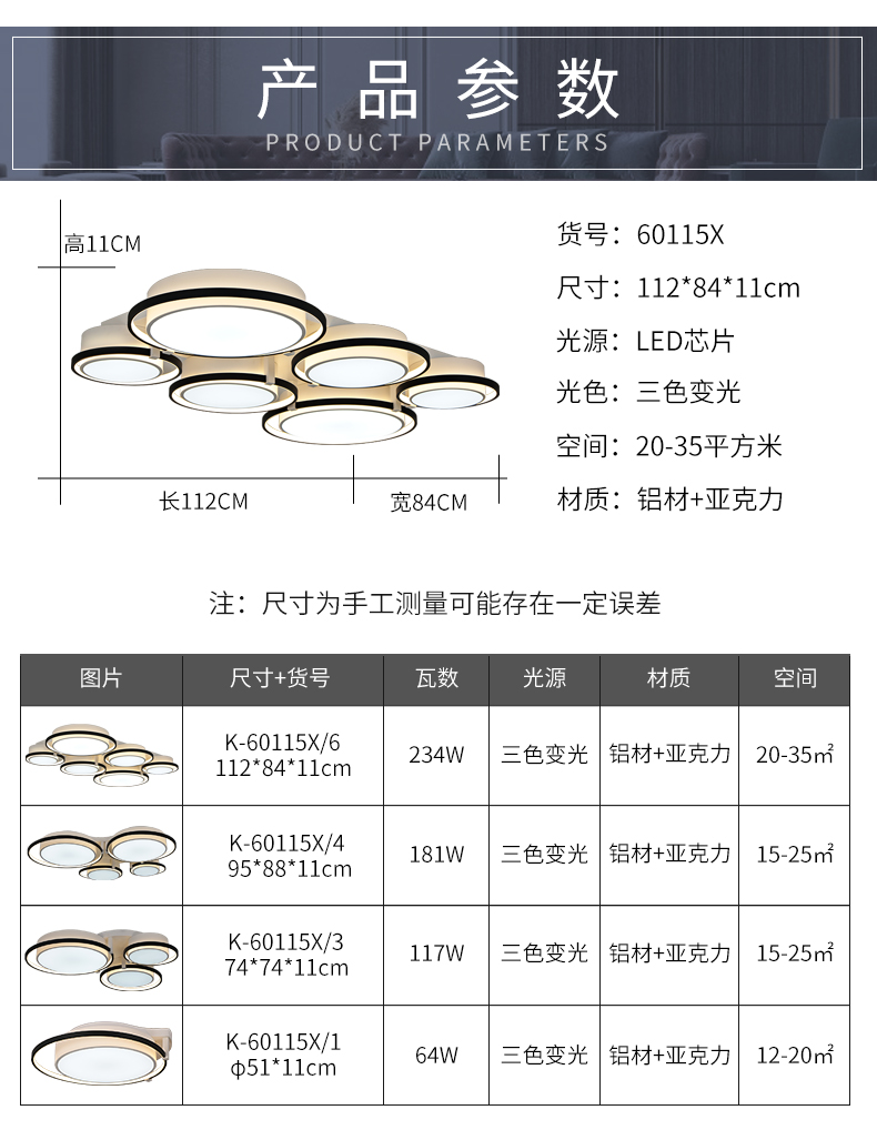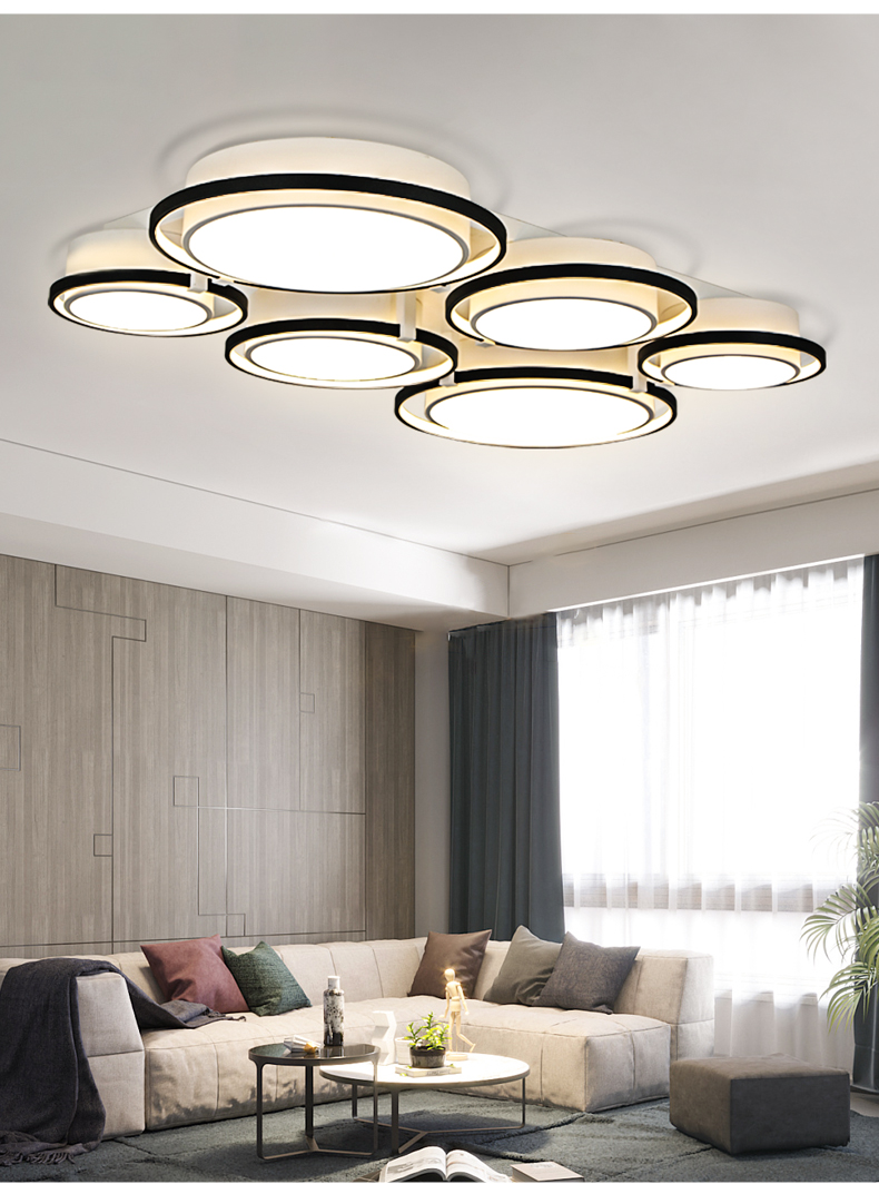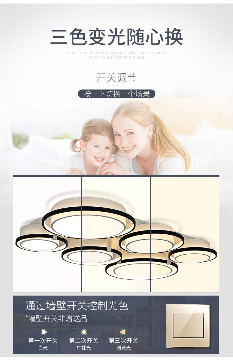 宏光灯饰 极简 铝材+亚克力 LED 49W 变光 哑白+沙黑色 3头吸顶灯¥340