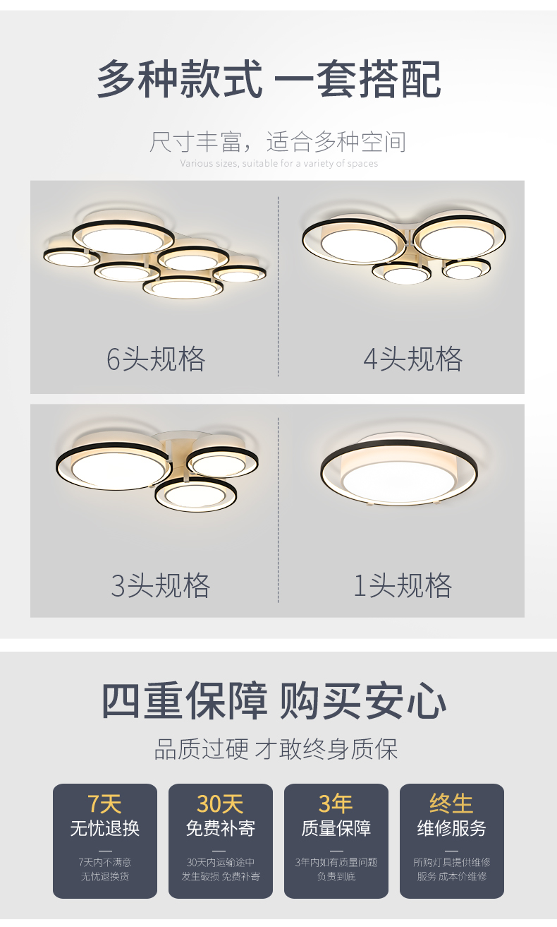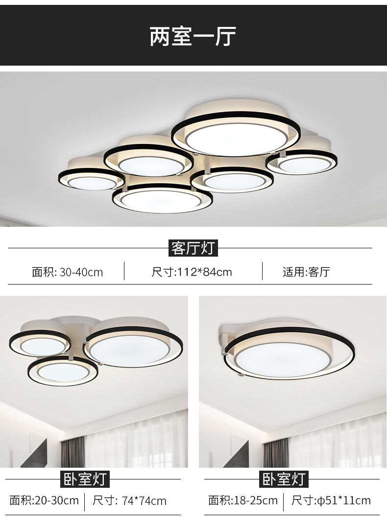 宏光灯饰 极简 铝材+亚克力 LED 33+31W 3000K 沙黑+沙白色 吸顶灯