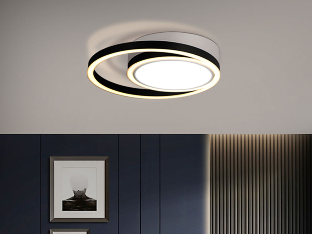 宏光灯饰 极简 铝材+亚克力 LED 49W 变光 哑白+沙黑色 3头吸顶灯¥340