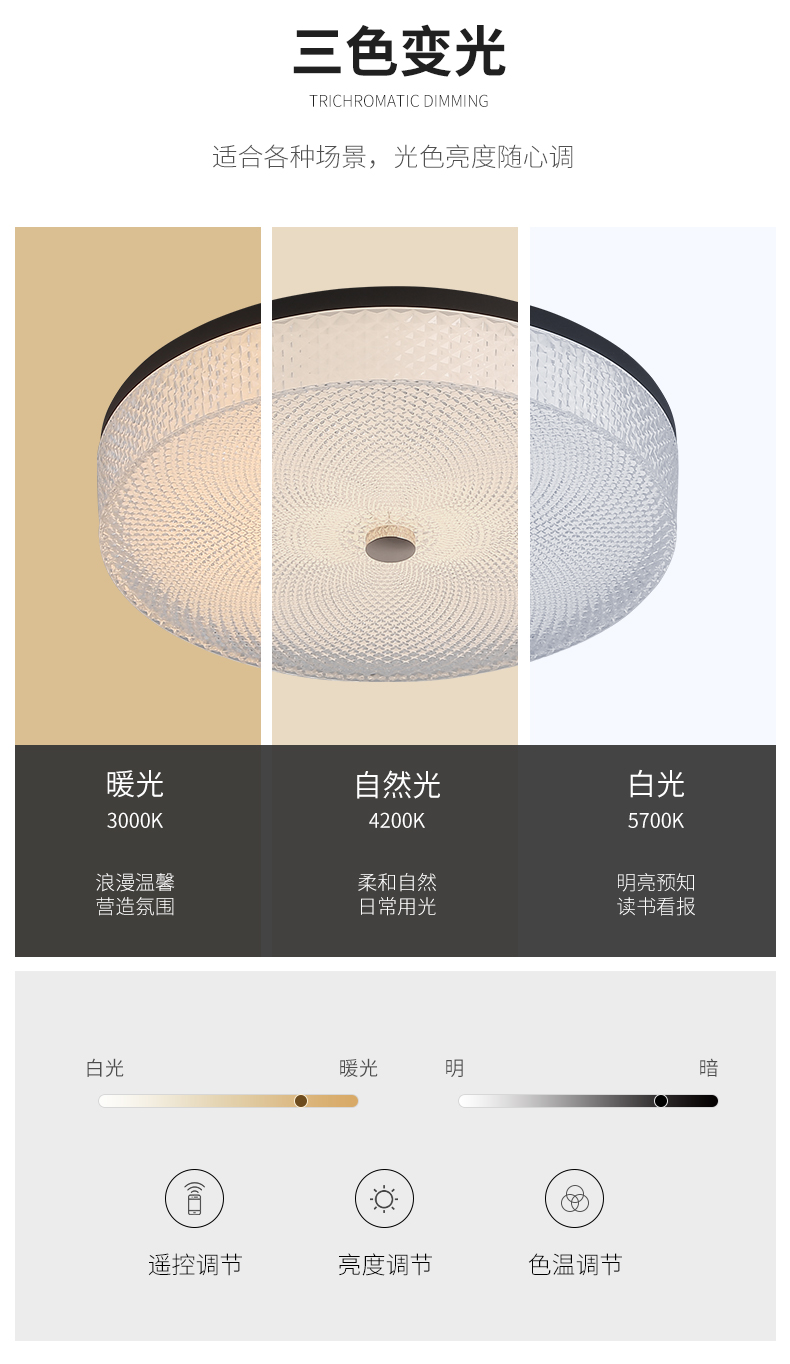 宏光灯饰 极简 冷扎钢板+铝材+亚克力 LED 52w 变光 沙白+S拉丝钛金色 大圆形吸顶灯