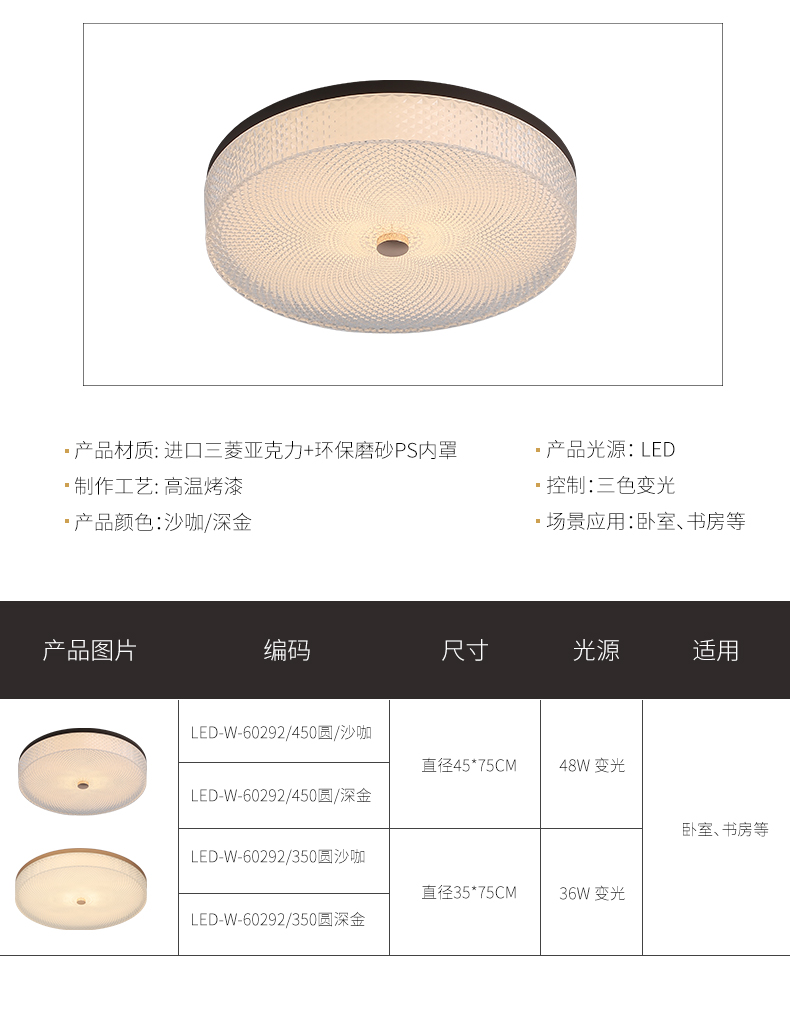 宏光灯饰 极简 冷扎钢板+亚克力 LED 36w 变光 沙咖色 圆形吸顶灯