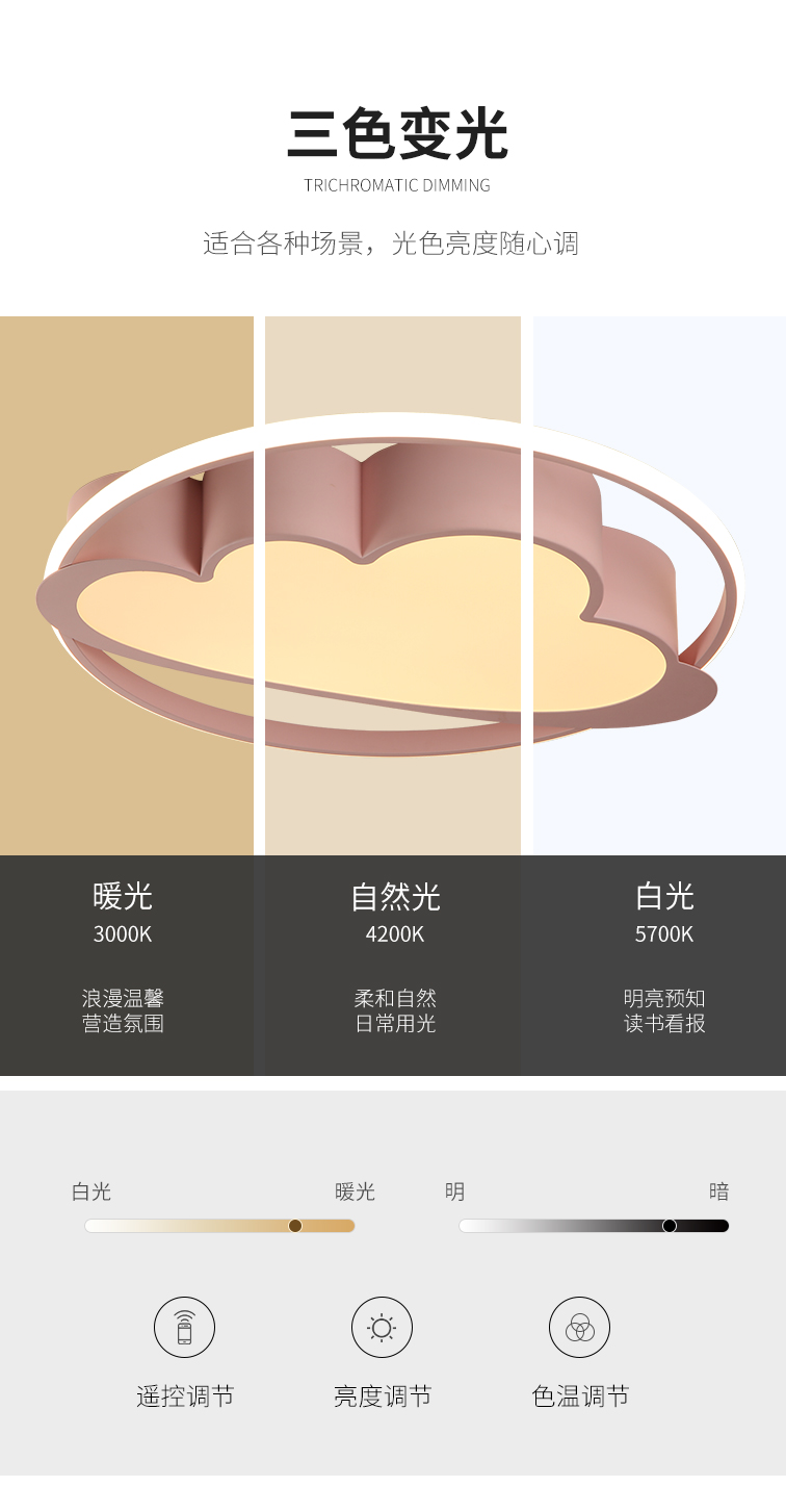 宏光灯饰 极简 注塑+亚克力 LED 64W 变光 粉色 圆形吸顶灯¥2365