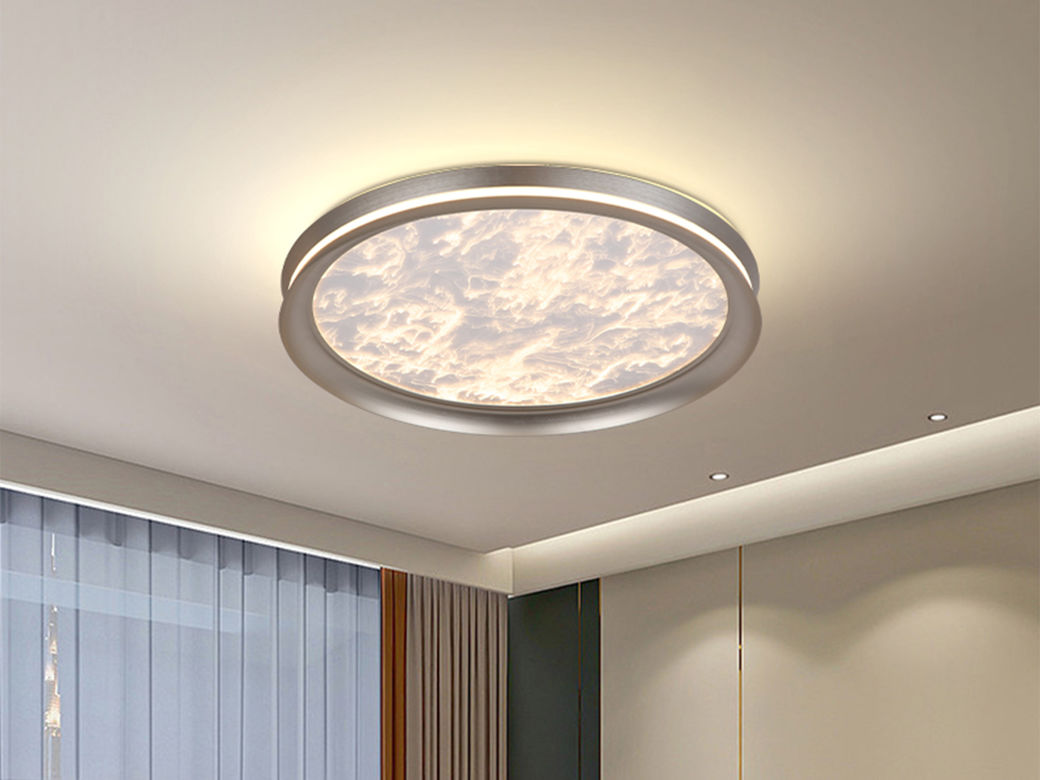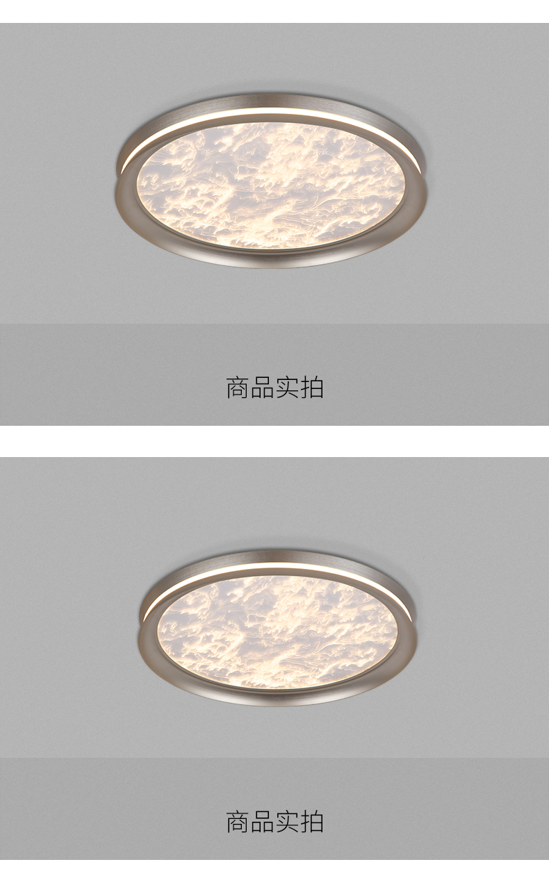 宏光灯饰 极简 冷扎钢板+铝材+亚克力 LED 52w 变光 沙白+S拉丝钛金色 大圆形吸顶灯