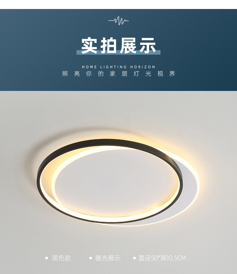 亚朵 现代简约 主材铝材+辅材铁艺亚克力 黑色 现代卧室32w圆形三色吸顶灯