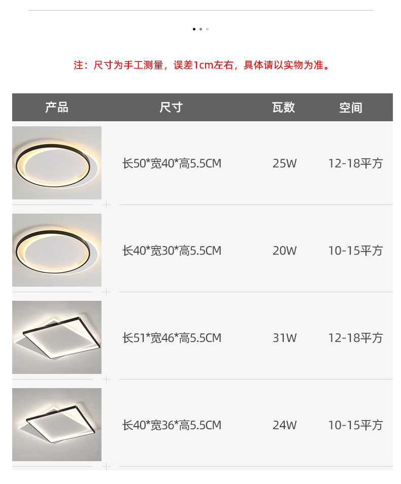宏光灯饰 极简 铝材+亚克力 LED 24+65W 变光 沙白+沙黑色 方形吸顶灯¥853
