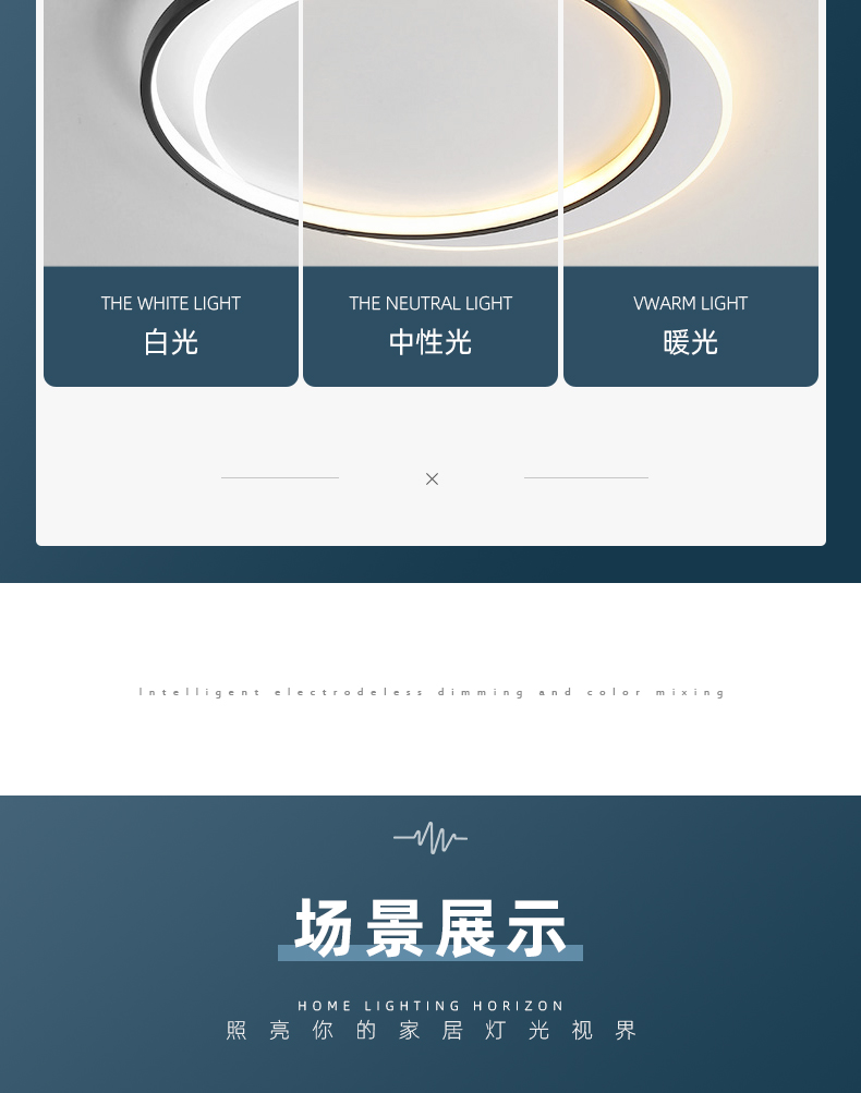 亚朵 现代简约 主材铁艺+辅材硅胶条 黑+白色 现代卧室31w方形三色吸顶灯 |