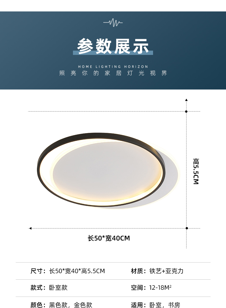 亚朵 现代简约 主材铝材+辅材铁艺亚克力 黑色 现代卧室32w圆形三色吸顶灯