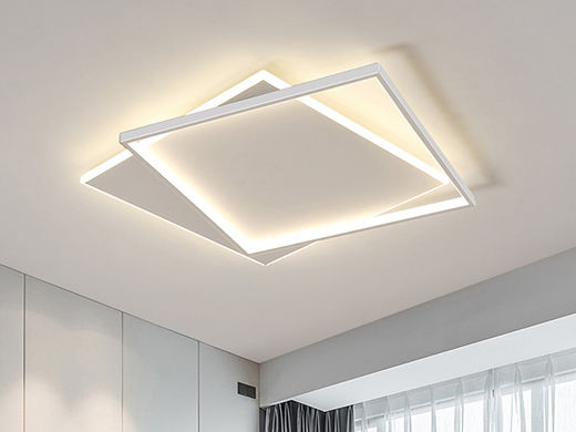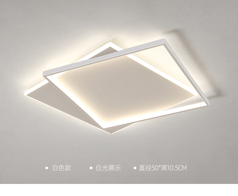 亚朵 现代简约 主材铁艺+辅材硅胶条 全白 现代卧室31w方形三色吸顶灯