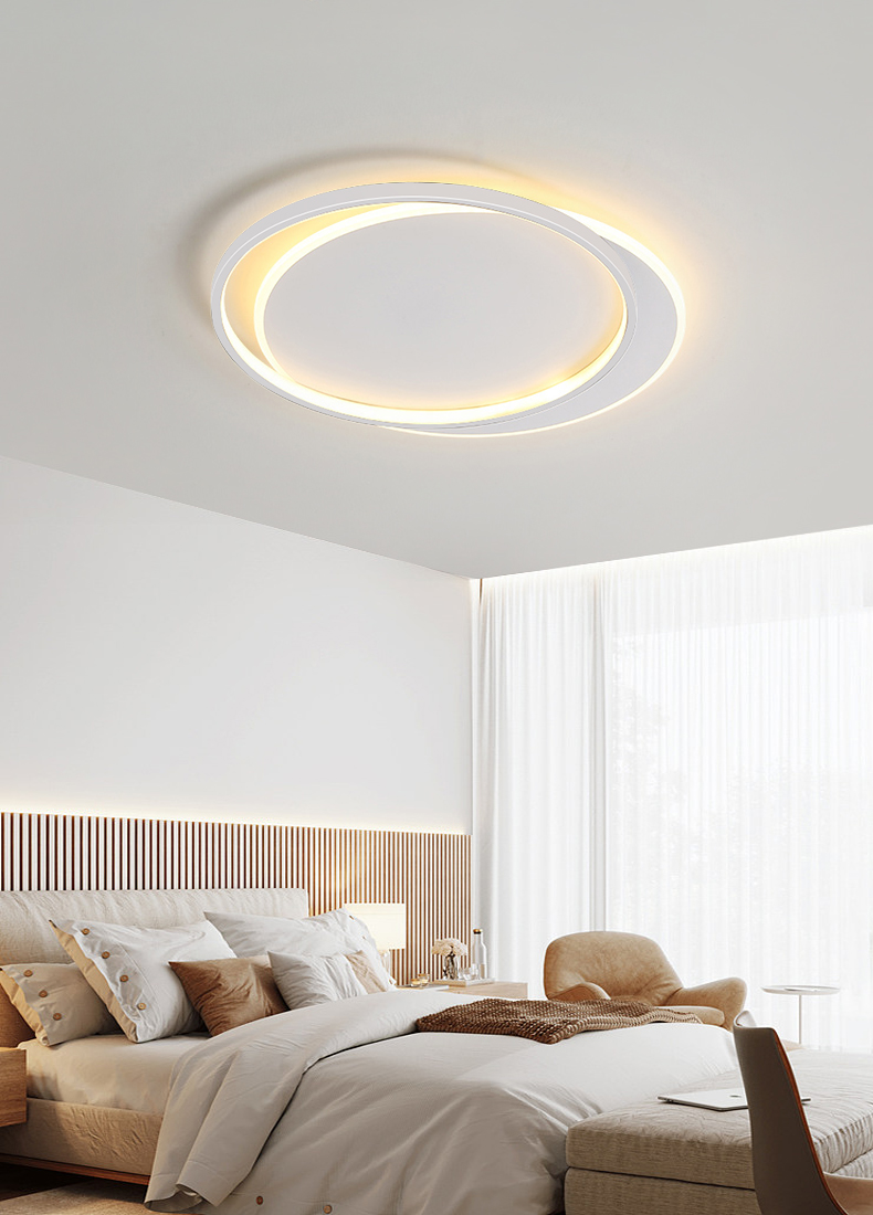 亚朵 现代简约 主材铁艺+辅材铝材硅胶条 白色 现代卧室56w圆形三色吸顶灯¥203