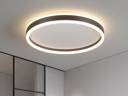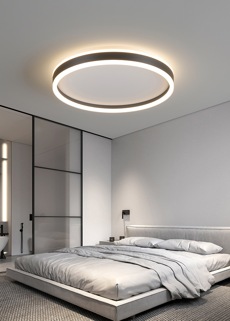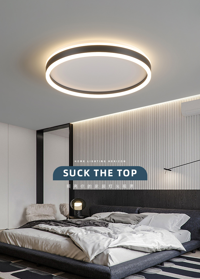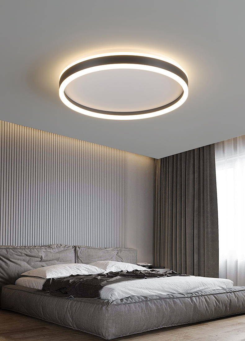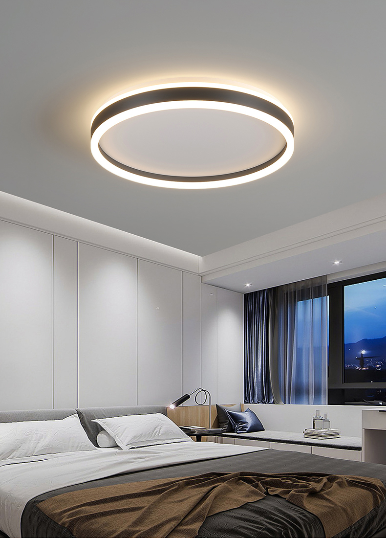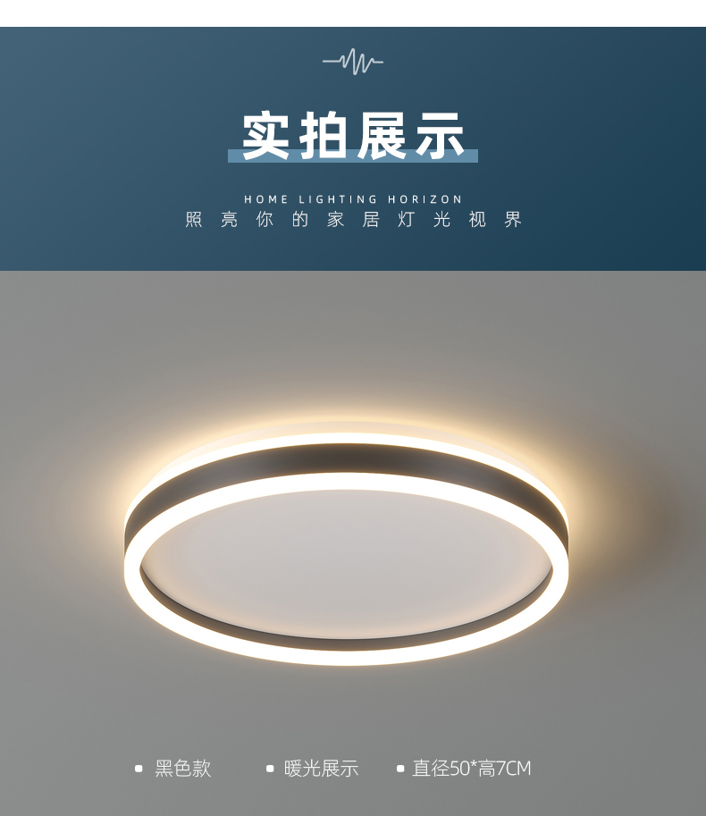 亚朵 现代简约 主材铝材+辅材铁艺亚克力 黑色 现代卧室32w圆形三色吸顶灯