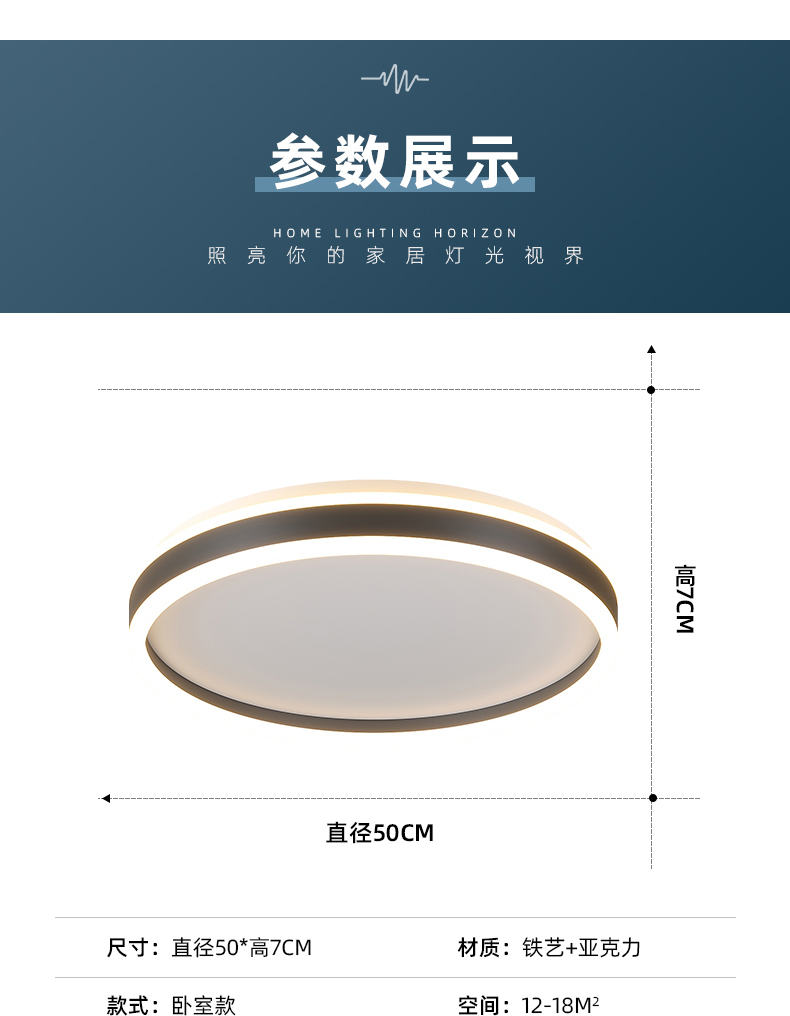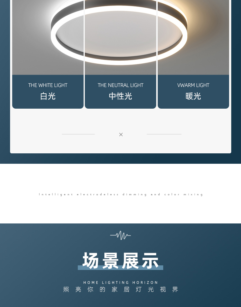 亚朵 现代简约 主材铁艺+辅材铝材硅胶条 白色 现代卧室30w圆形三色吸顶灯¥813
