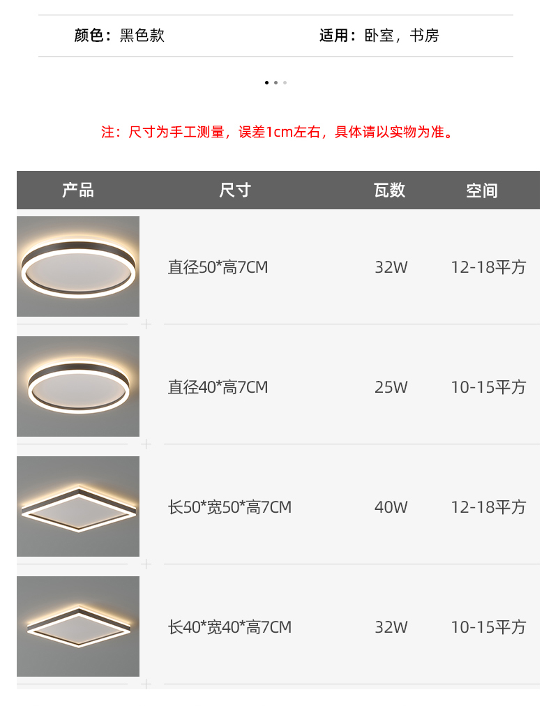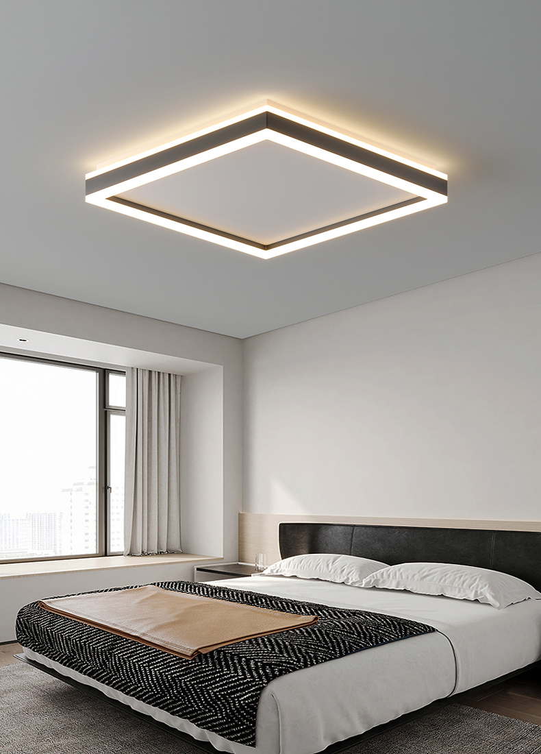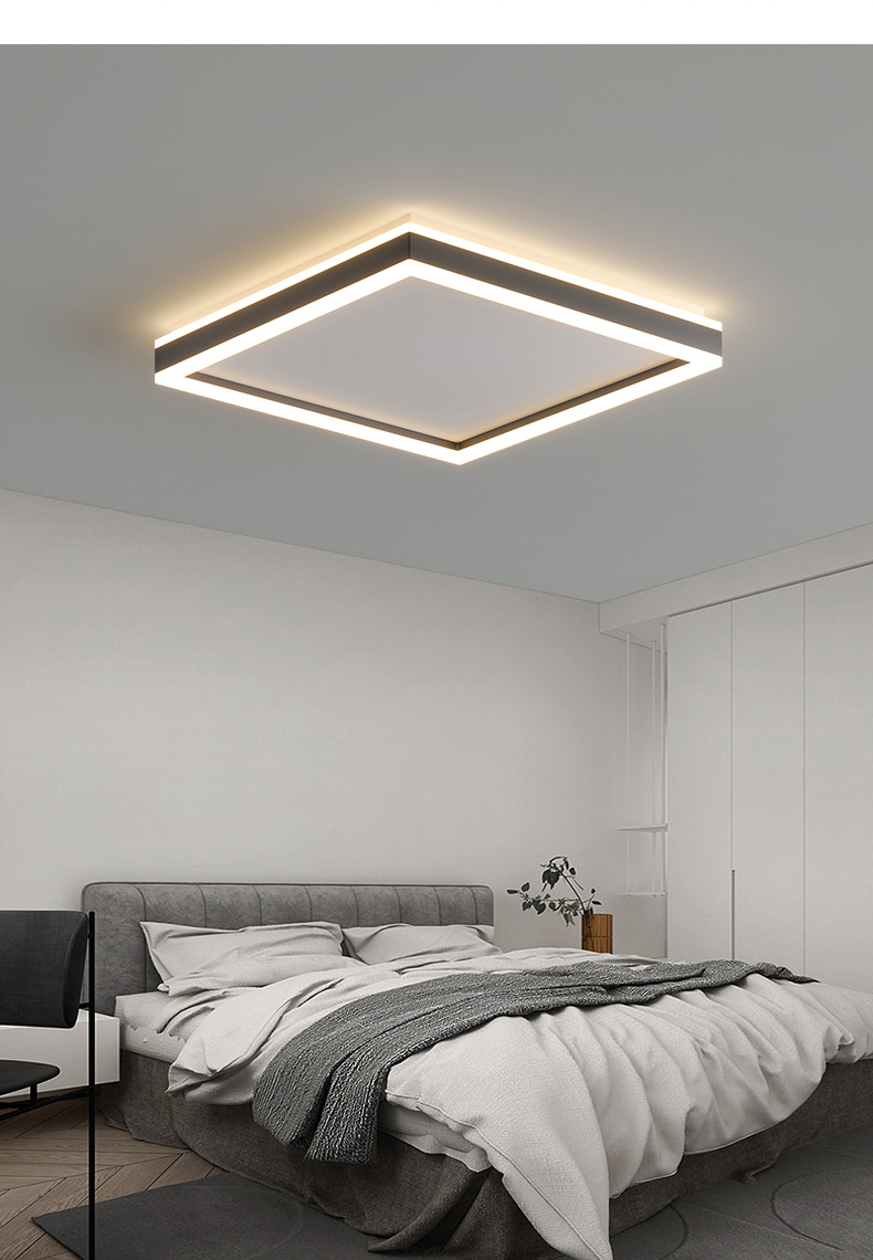 亚朵 现代简约 主材铁艺+辅材硅胶条 黑+白色 现代卧室24w方形三色吸顶灯