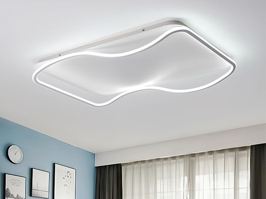 亚朵 现代简约 主材铁艺+辅材硅胶条 全白 现代卧室31w方形三色吸顶灯