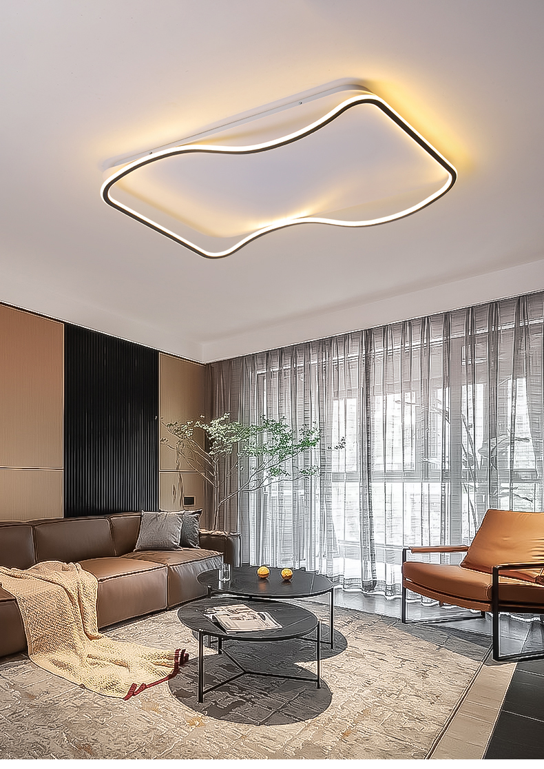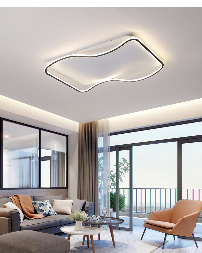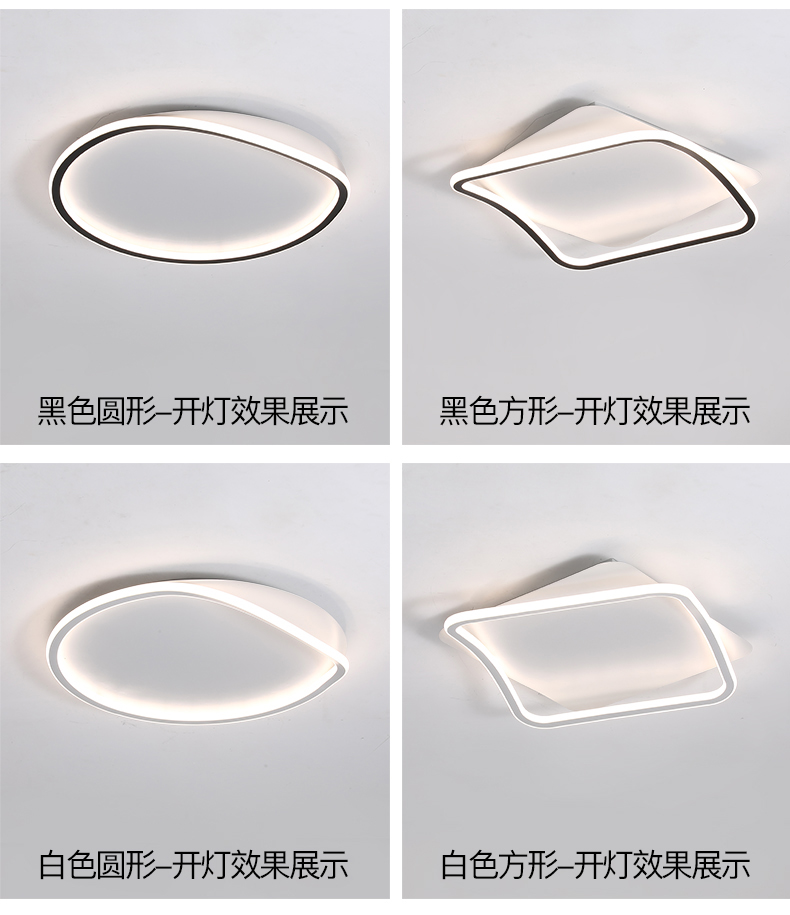 亚朵 现代简约 主材铁艺+辅材硅胶条 黑+白色 现代卧室24w方形三色吸顶灯