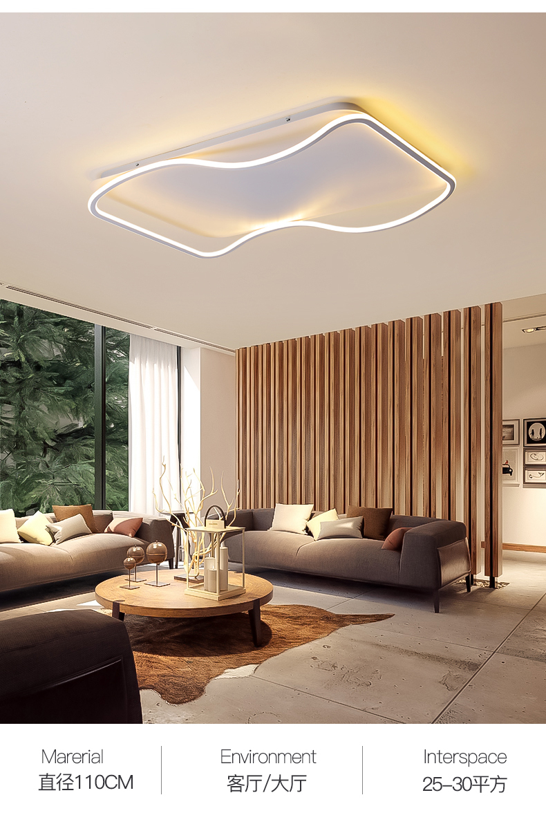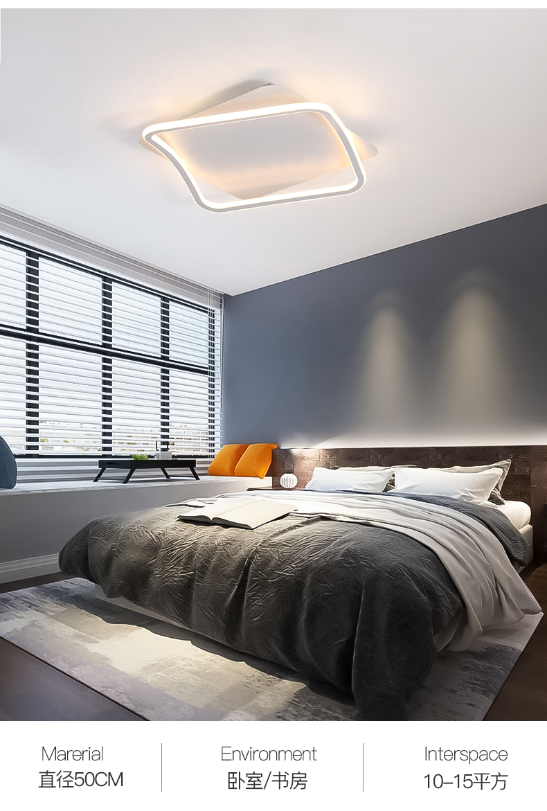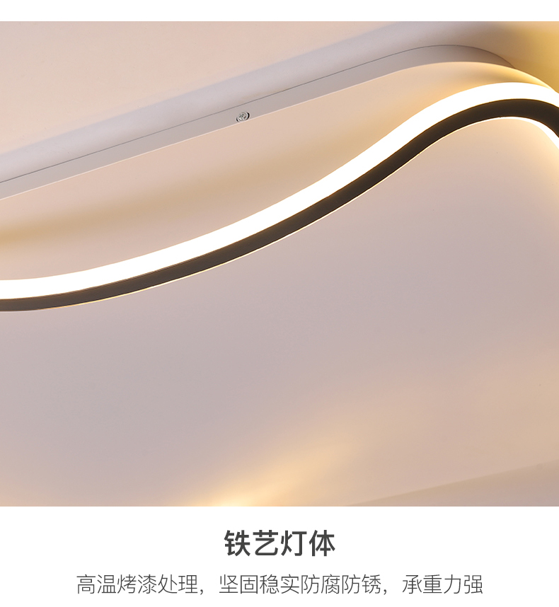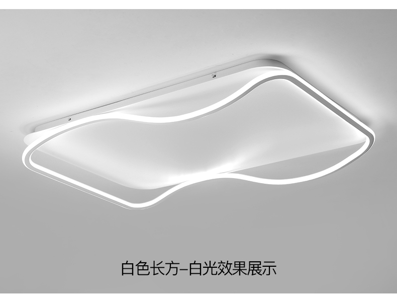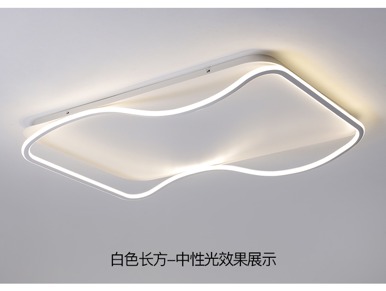 亚朵 现代简约 主材铁艺+辅材硅胶条 全白 现代卧室31w方形三色吸顶灯