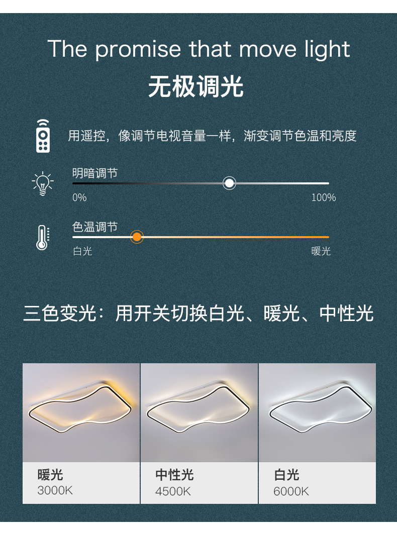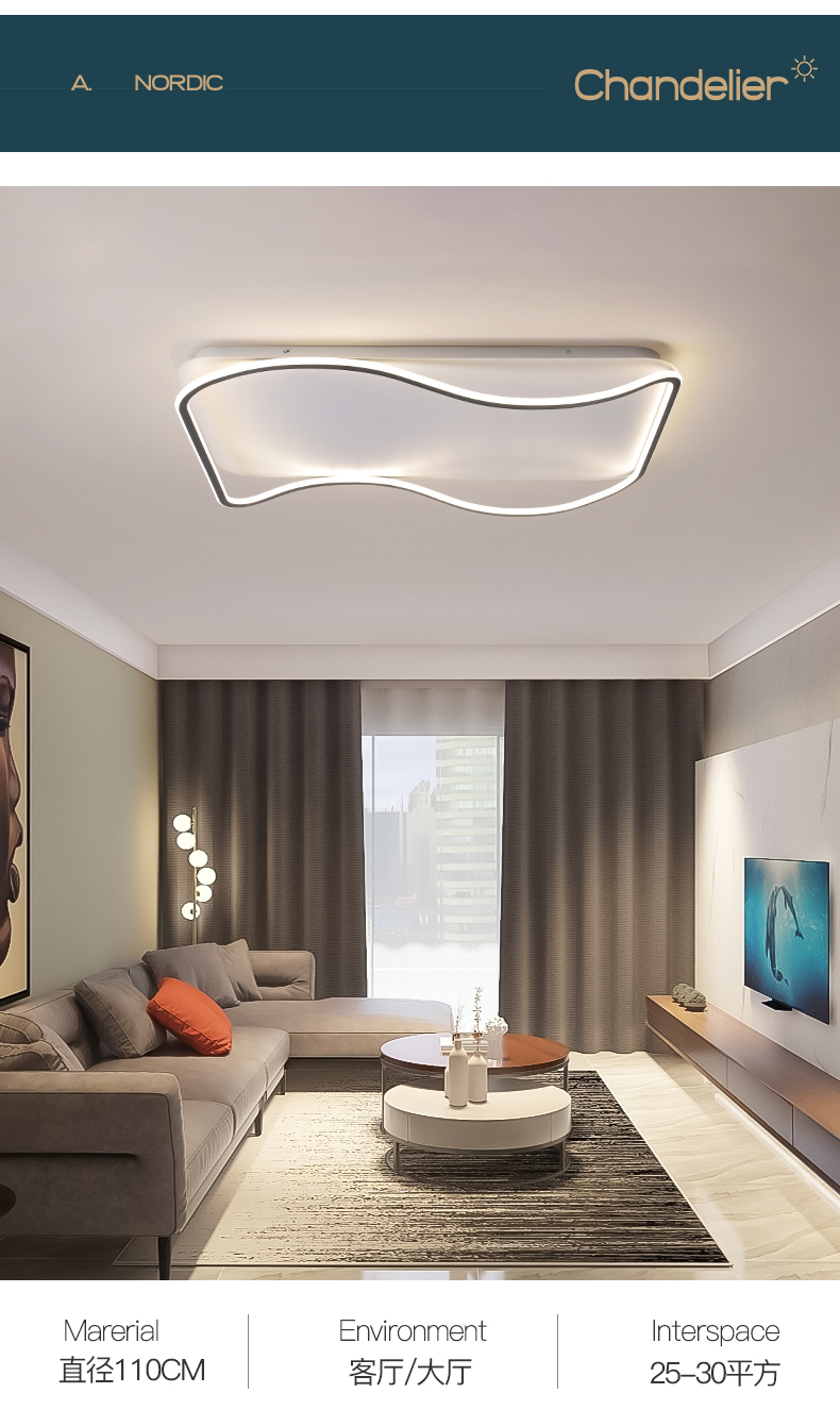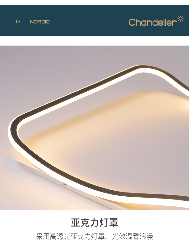 亚朵 现代简约 主材铁艺+辅材硅胶条 全白 现代卧室31w方形三色吸顶灯