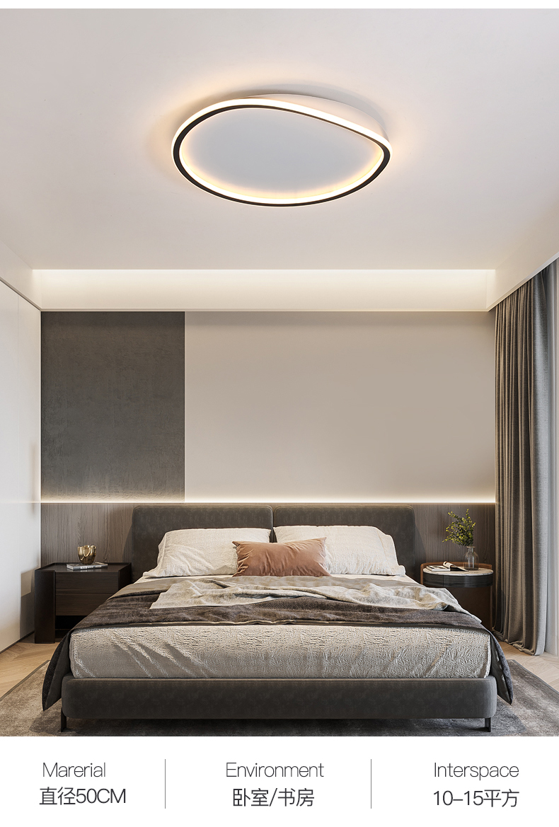亚朵 现代简约 主材铁艺+辅材铝材硅胶条 白色 现代卧室30w圆形三色吸顶灯¥1960