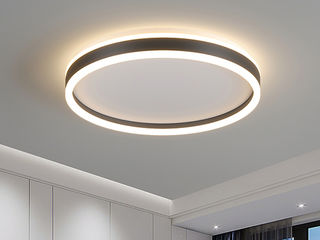 亚朵 现代简约 主材铝材+辅材铁艺亚克力 黑色 现代卧室32w圆形三色吸顶灯