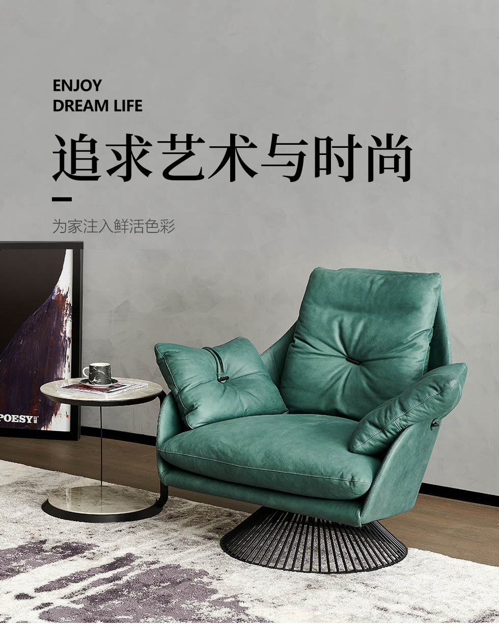米洛蒂 极简 皮+弯板 高回弹海绵 四星转脚 图片色 休闲椅¥4874